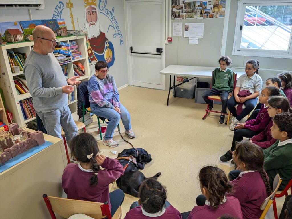 Cette intervention a donc clôturé la période travaillée sur le handicap. Catherine et Patrick ont bien expliqué aux élèves que le rôle du chien guide était essentiel pour guider la personne aveugle ou malvoyante, mais qu’eux aussi avaient leur rôle à jouer pour aider toute personne qu’ils voyaient en difficulté.