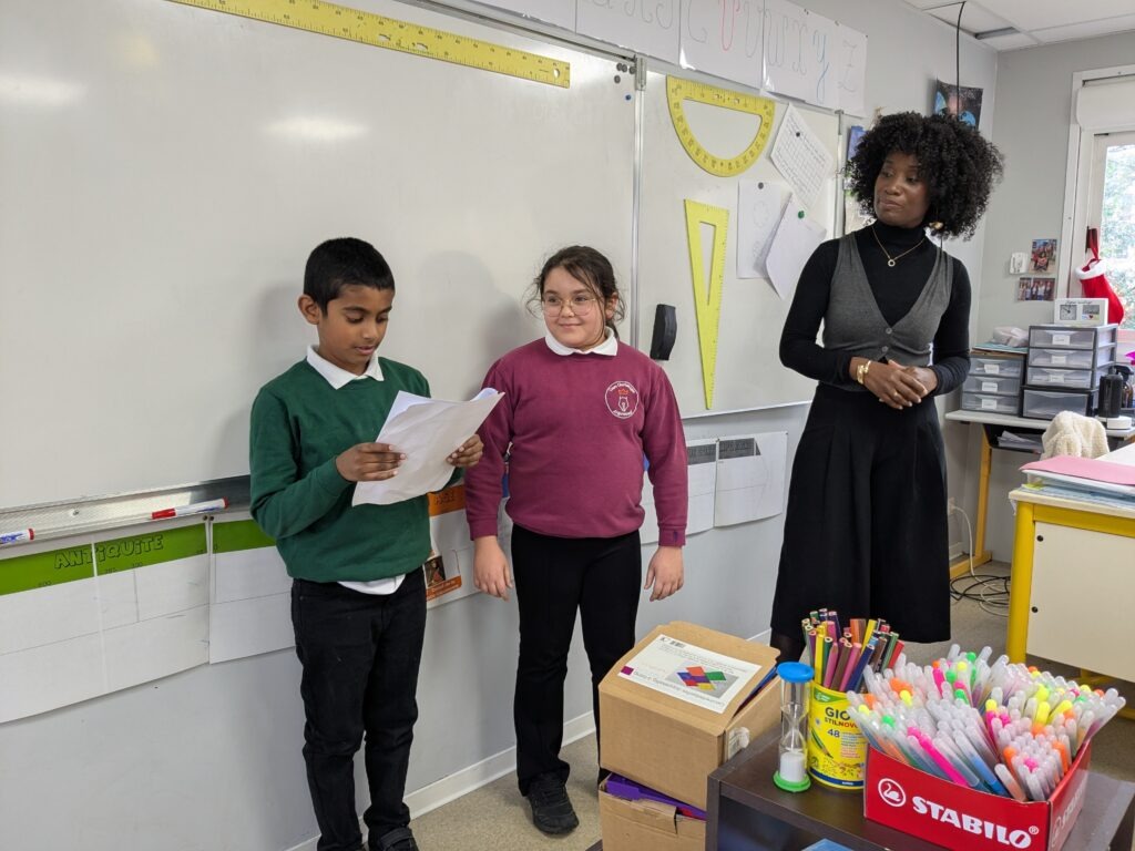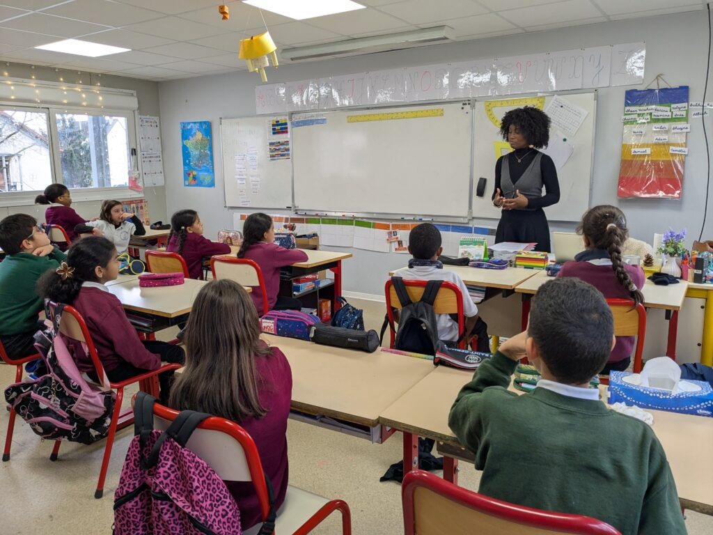 La classe de CM1 du Cours Charlemagne, dont Constance Croux est professeure, a eu la chance de bénéficier d’une initiation à l’éloquence animée par une intervenante passionnée : Annie-Monia Kakou, présidente de l’association @TCHE TCHE Bias (« Enfant de l’aube »).