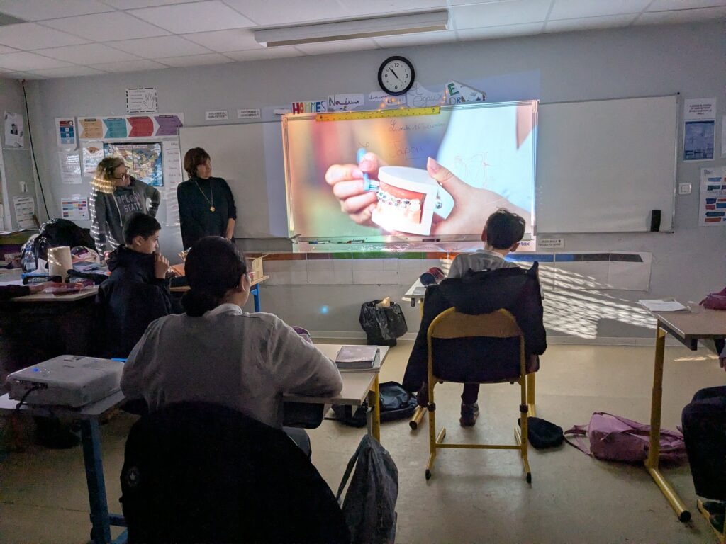 Lundi 15 décembre 2025, comme annoncé dans le cadre des actions portées par Le Comident, Valérie Michaud et plusieurs collaboratrices de Haleon sont intervenues dans toutes les classes du CP à la 3ème pour mener une action de prévention sur l’hygiène bucco-dentaire.