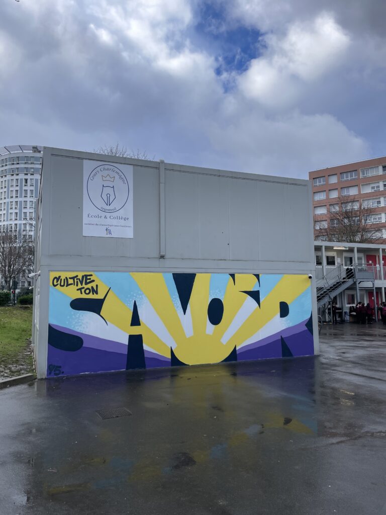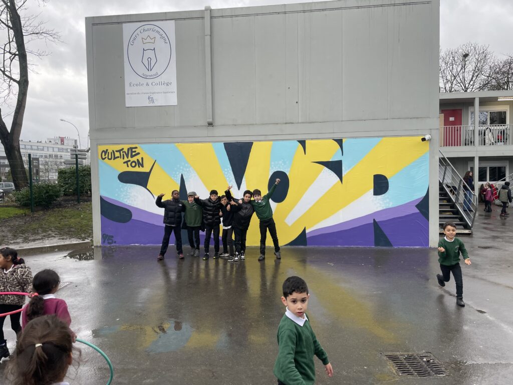 Le résultat est éloquent sur la satisfaction de tous de pouvoir admirer cette fresque colorée et inspirante au Cours Charlemagne.