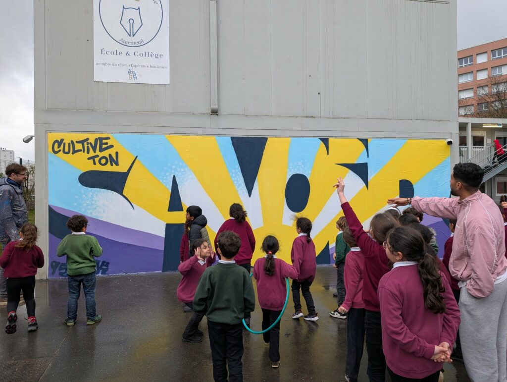 Le thème choisi pour la fresque est « Cultive ton savoir » tenant compte des valeurs mises à l’honneur au sein du réseau Espérance banlieues.